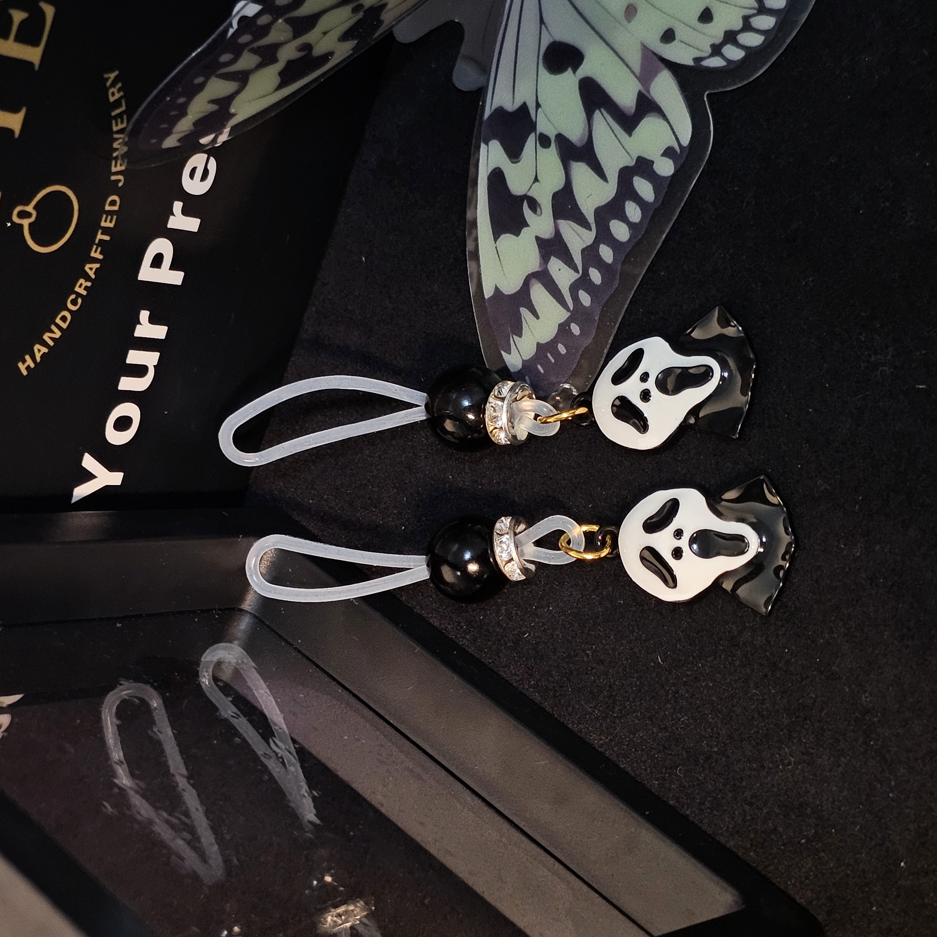 A clever blend of playfulness and mystery, this pendant is perfect for Halloween parties or dark-themed outfits. The adjustable clip allows for precise adjustment to your preferred tightness, ensuring a secure fit while maintaining comfort. The exquisitely crafted pendant features a striking metallic finish, adding a unique touch of personality and playfulness. It's the perfect finishing touch to any party look or a bold and captivating statement in intimate settings. Compact and lightweight, it's easy to carry and pairs beautifully with clothing and accessories for a stylish and creative look. Whether for self-expression or as a gift for a loved one, this pendant is a unique choice that embodies both festive spirit and personal style.