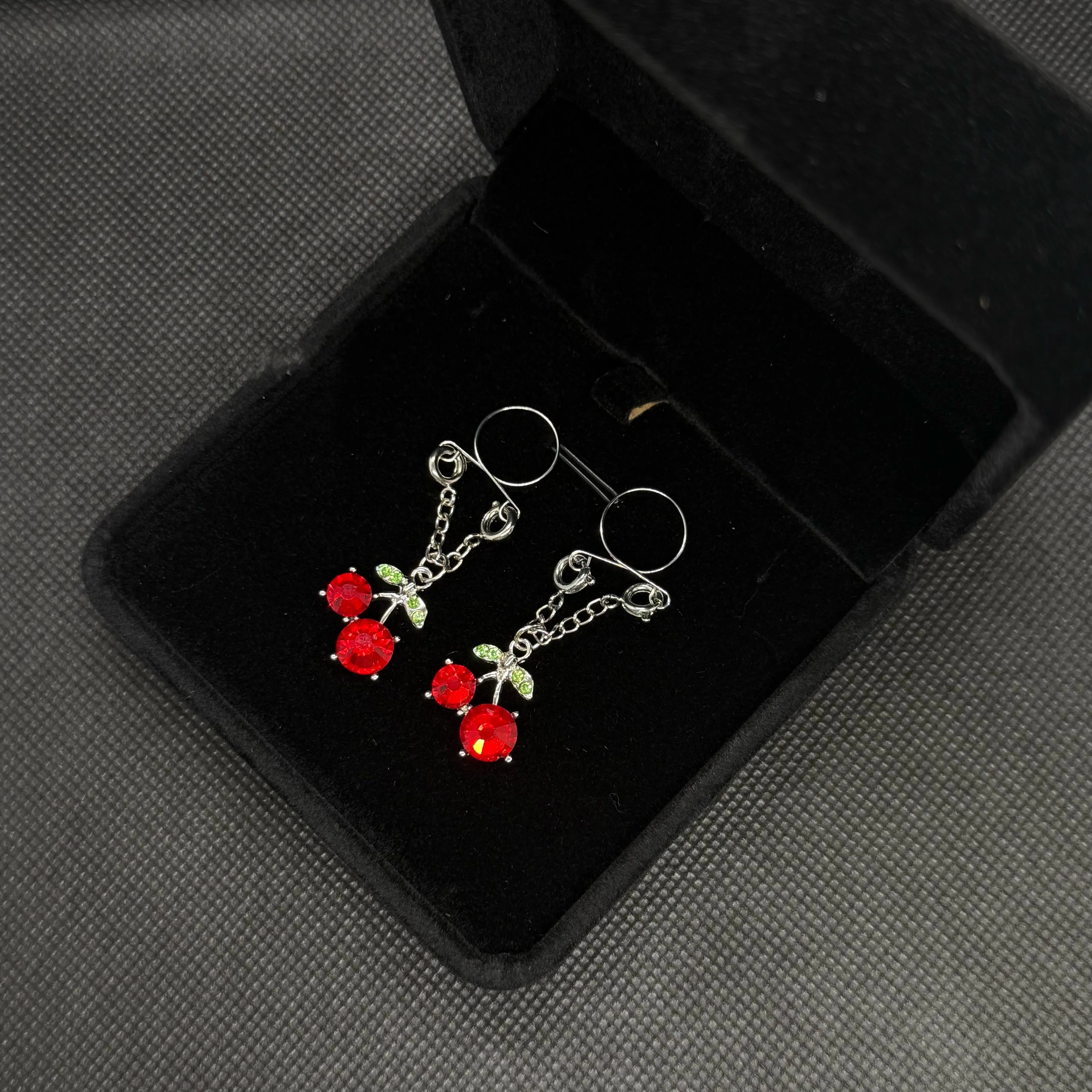 The perfect blend of playful sweetness and sensual allure, these nipple clamps deliver a captivating visual and wearing experience. Crafted from high-quality metal and a spring-loaded construction, these clamps offer a gentle, adjustable clamping force for a secure and comfortable fit, suitable for varying sensitivities. The pendant features a delicate cherry design, with two vibrant, shimmering red gemstones, seemingly capturing the sweetness and allure of the fruit on the chest. The spring design not only facilitates donning and doffing, but also adds a playful, dynamic touch to any look. No piercings are required, making it easy for both beginners and seasoned enthusiasts to experience the unique charm of body jewelry. Whether for couples, at a party, or during a photoshoot, these nipple clamps instantly ignite the atmosphere, showcasing confidence, femininity, and a unique personal style.