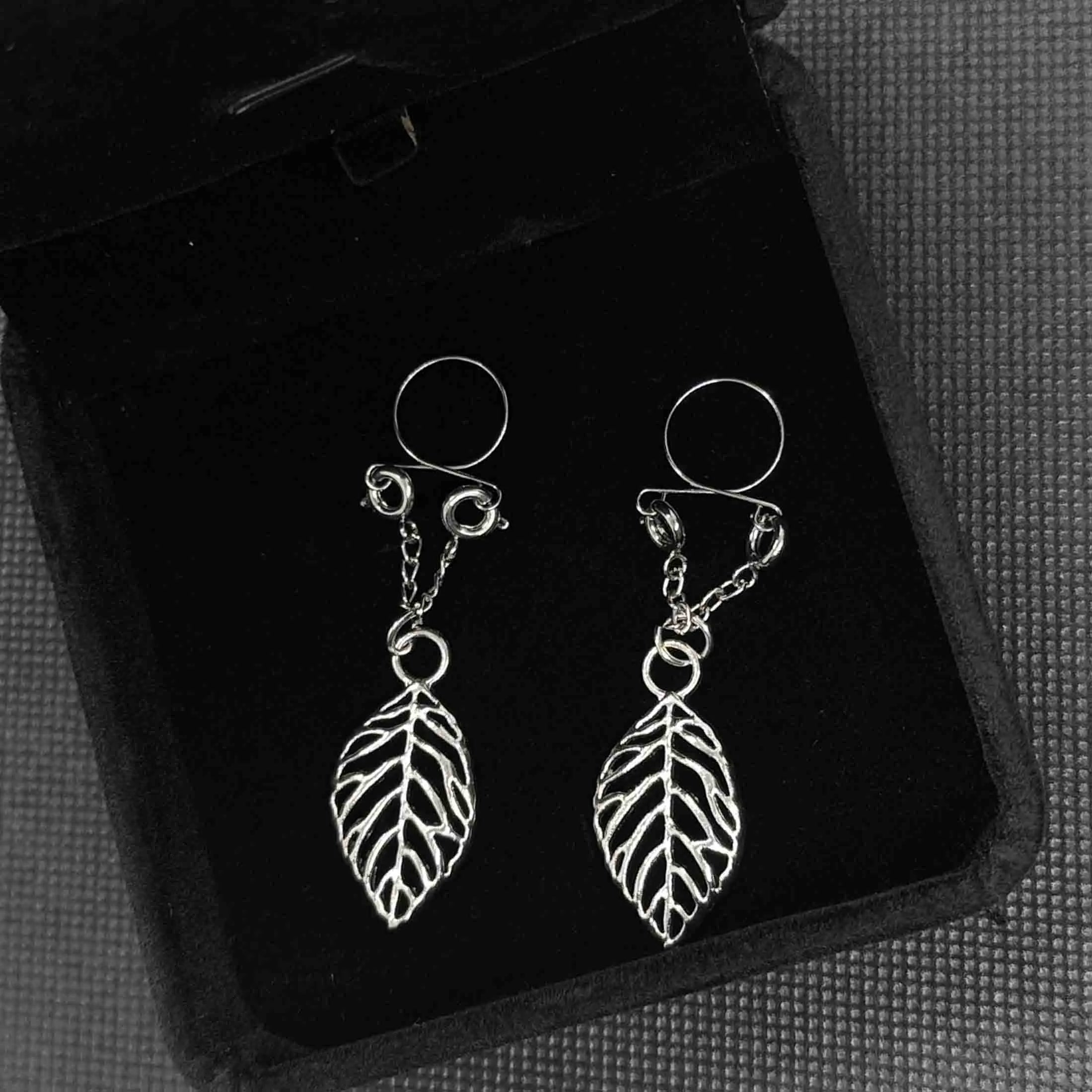A masterful blend of softness and strength. Made of high-quality titanium steel, it's hypoallergenic, fade-resistant, and features a smooth, polished finish for a comfortable, gentle fit. The unique spring clip design allows for wear without piercings, providing just the right amount of force for a secure, comfortable fit. The delicate and elegant blade shape, with its metallic sheen gleaming under the light, adds a touch of sensuality and mystery to any look. Whether in private moments, stage performances, or personal portraits, it's a captivating focal point, highlighting a woman's unique charm and confidence, ensuring every appearance is imbued with allure and style.