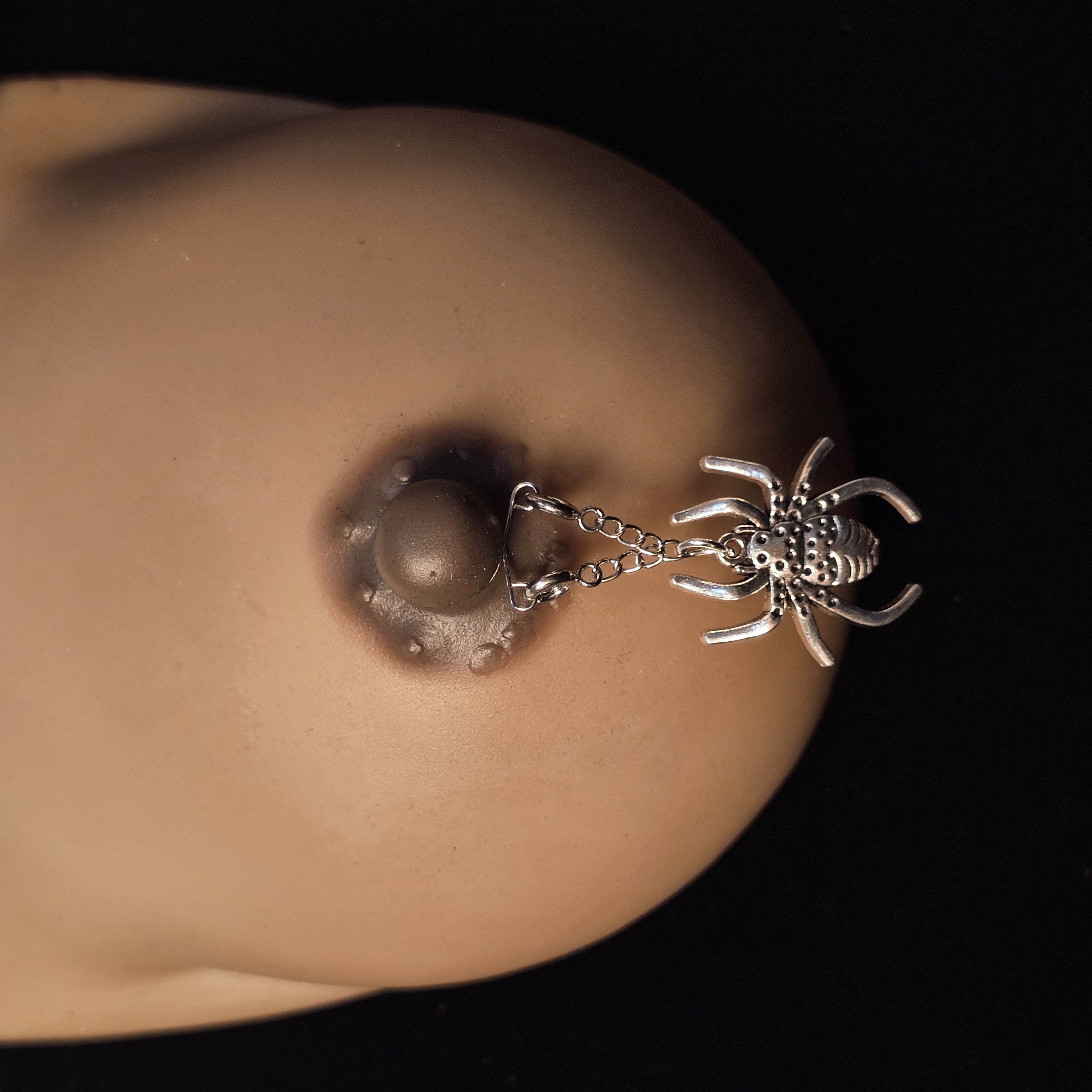 These nipple clamps create a mysterious and edgy vibe, perfect for Halloween or dark-themed parties. The adjustable clamp allows the wearer to freely adjust the tightness, ensuring a secure fit while ensuring comfort. The delicate spider-shaped details contrast with the lustrous silver metal, adding a cool and unique touch. They're not only a striking accessory for party looks, but also a unique and charming addition for intimate occasions. Lightweight and portable, they easily coordinate with clothing and accessories, adding a bold and fashionable touch to any outfit. Whether worn as a personal accessory or as a fun gift for a loved one, they're the perfect choice for showcasing your personality and celebrating the festive season.