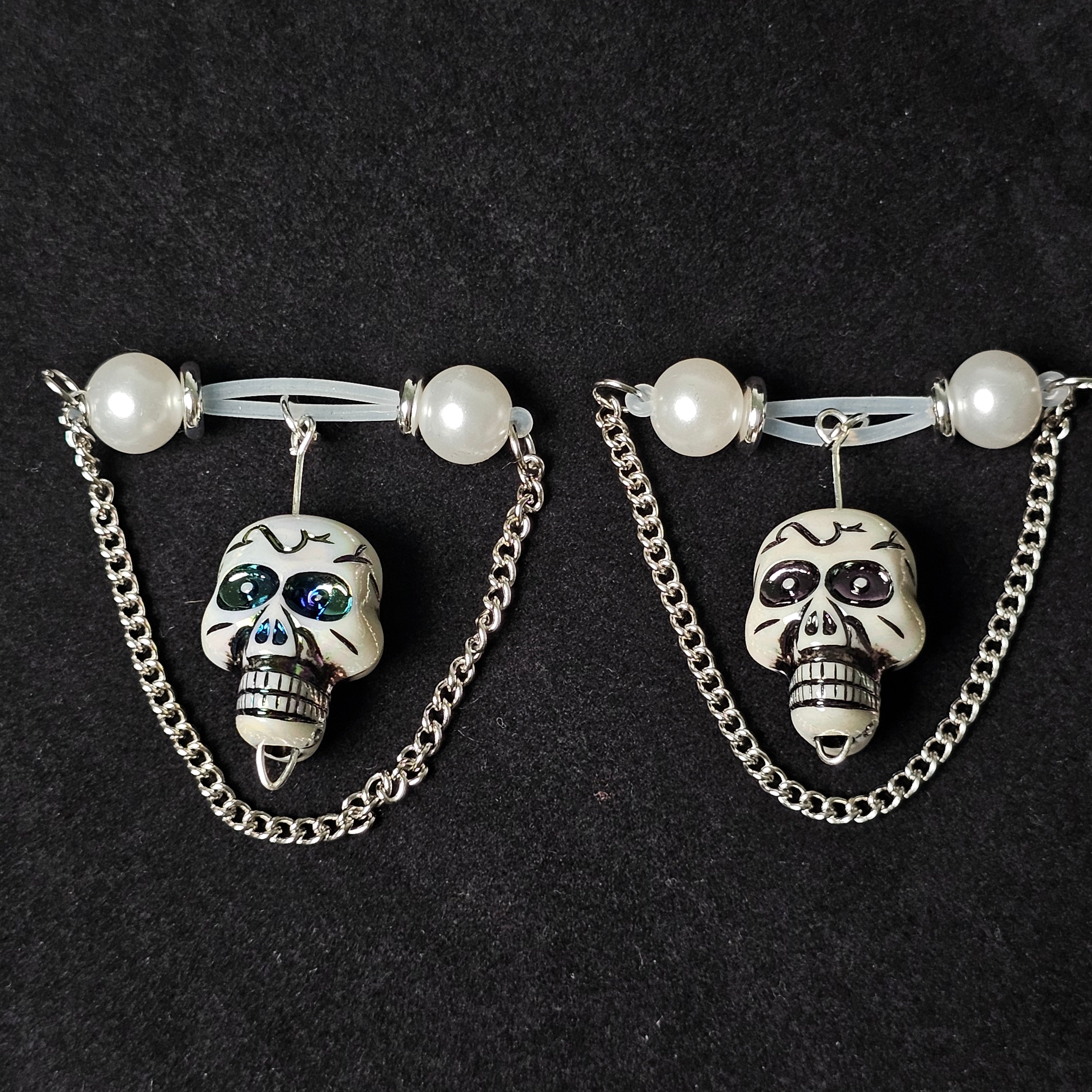 Inspired by the shape of a barbell, this piece features white beads and a delicate skull pendant, embodying a balance of strength and individuality. The silver chain's refined luster and sleek lines enhance the overall premium feel. The adjustable design allows for flexible and comfortable wear, perfect for any occasion. Whether worn with streetwear or a more personal style, it creates a unique and striking look. More than just a piece of jewelry, it's a form of self-expression, blending exquisite craftsmanship with irreverent attitude to imbue the wearer with confidence and a unique allure.