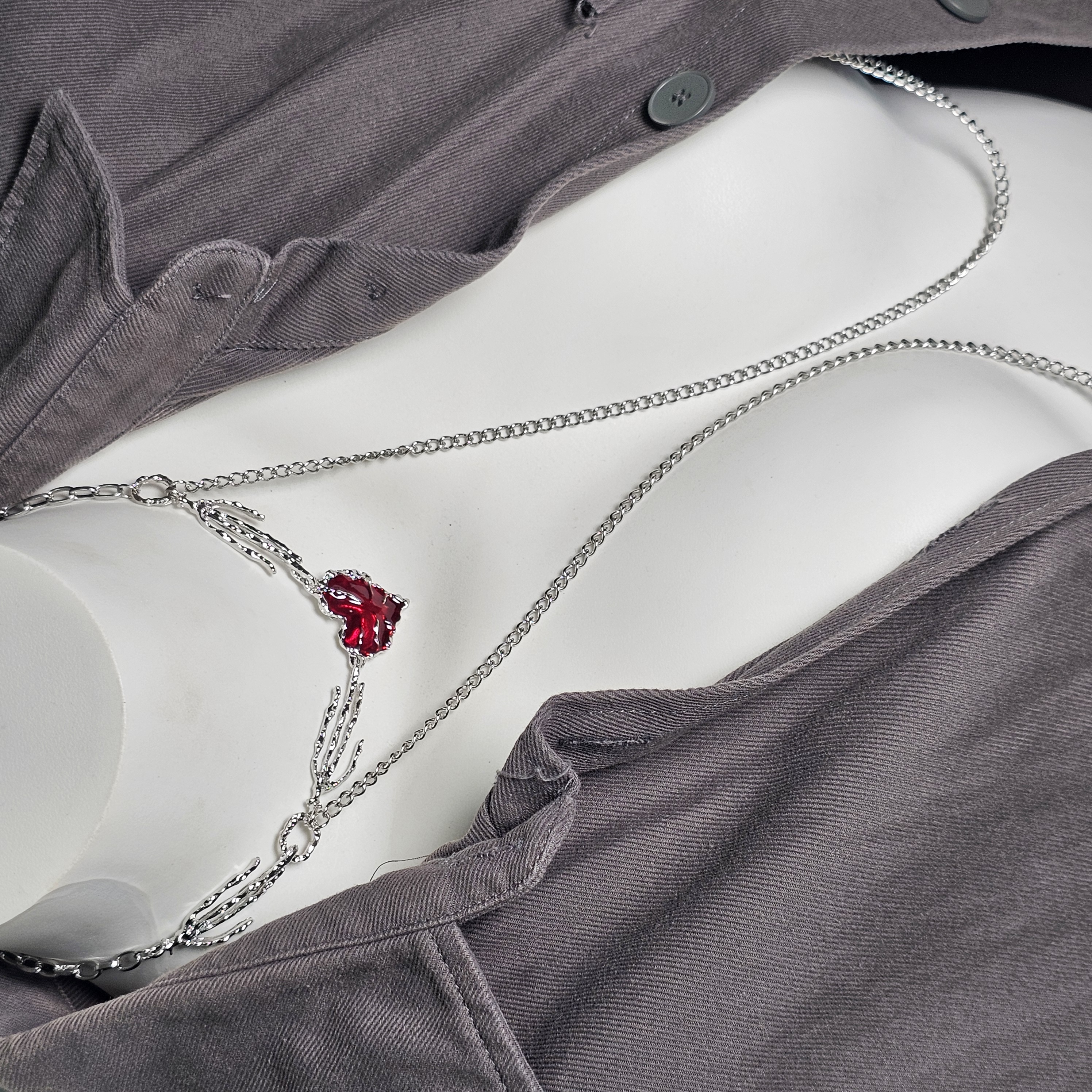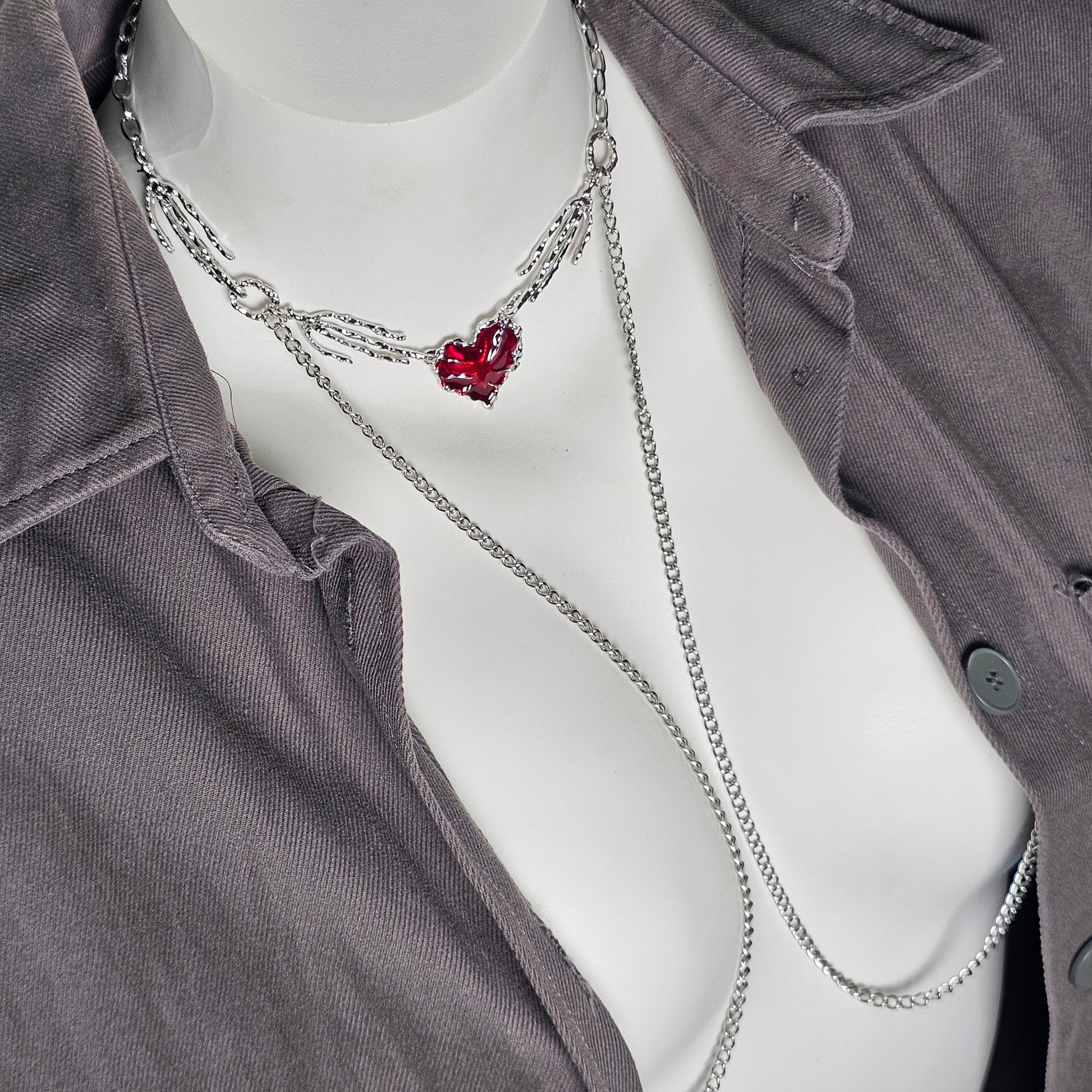 👻Color: Silver chain with faux jewelry.