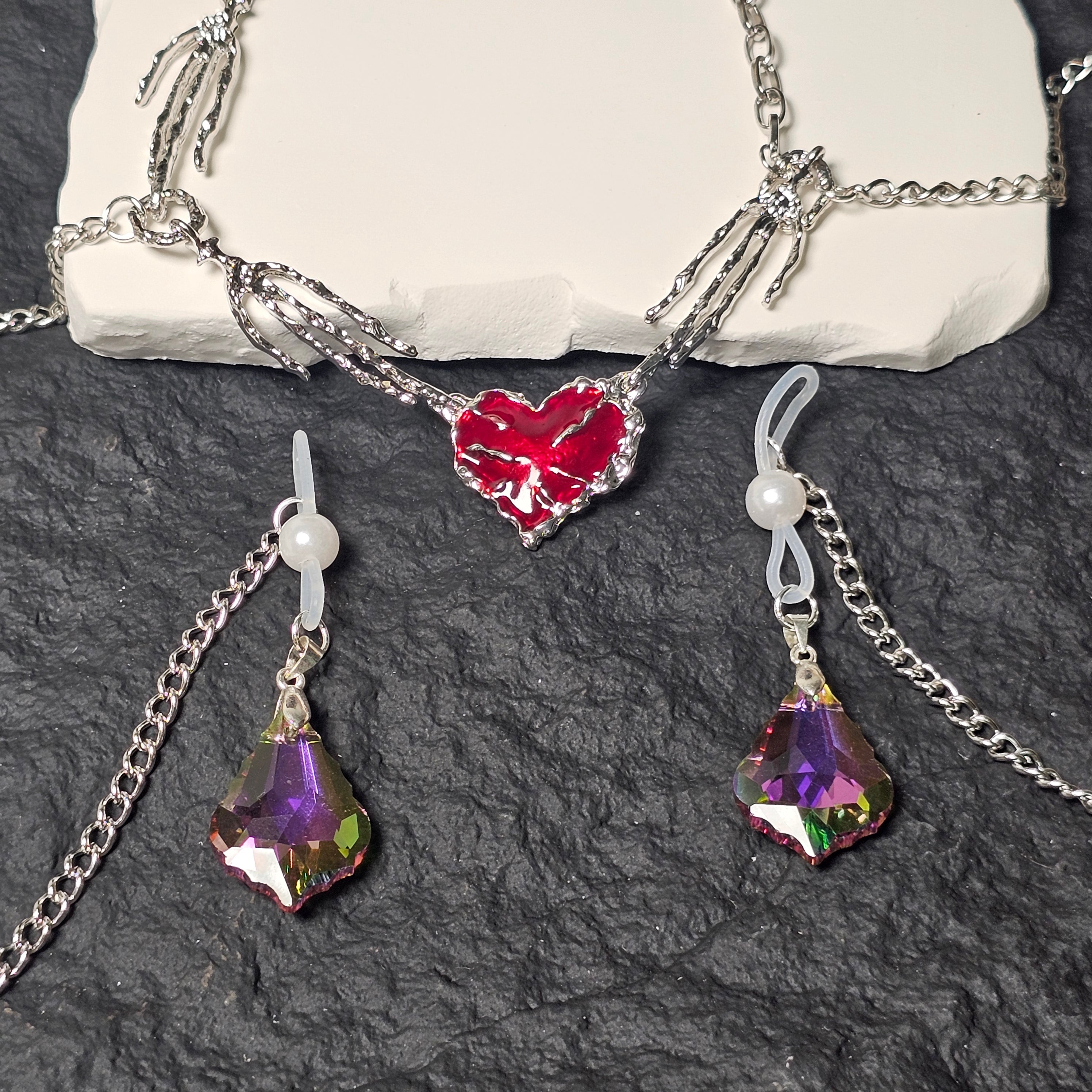 👻Dimensions: Necklace length 40cm + 5cm extender; nipple clip chain length 35cm.