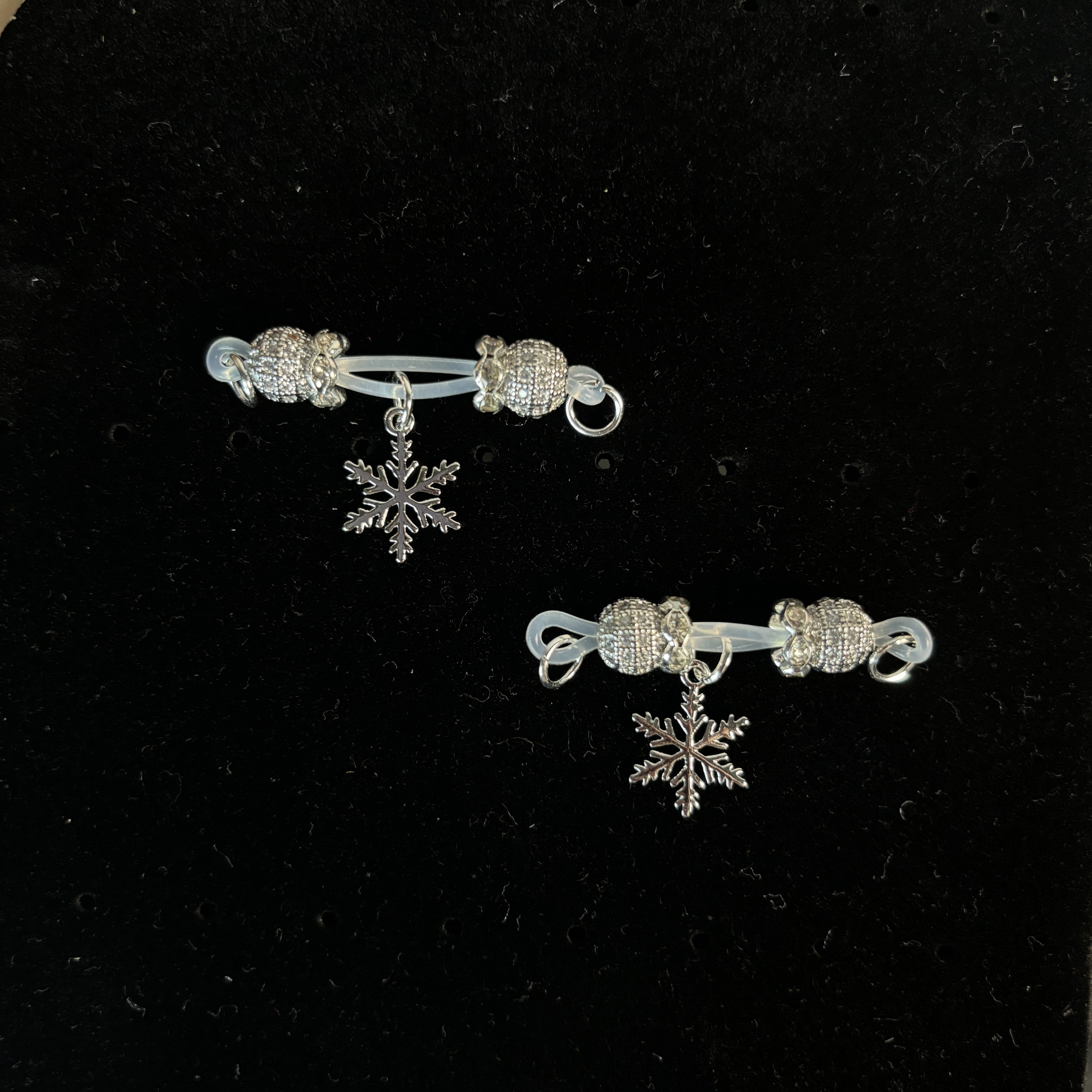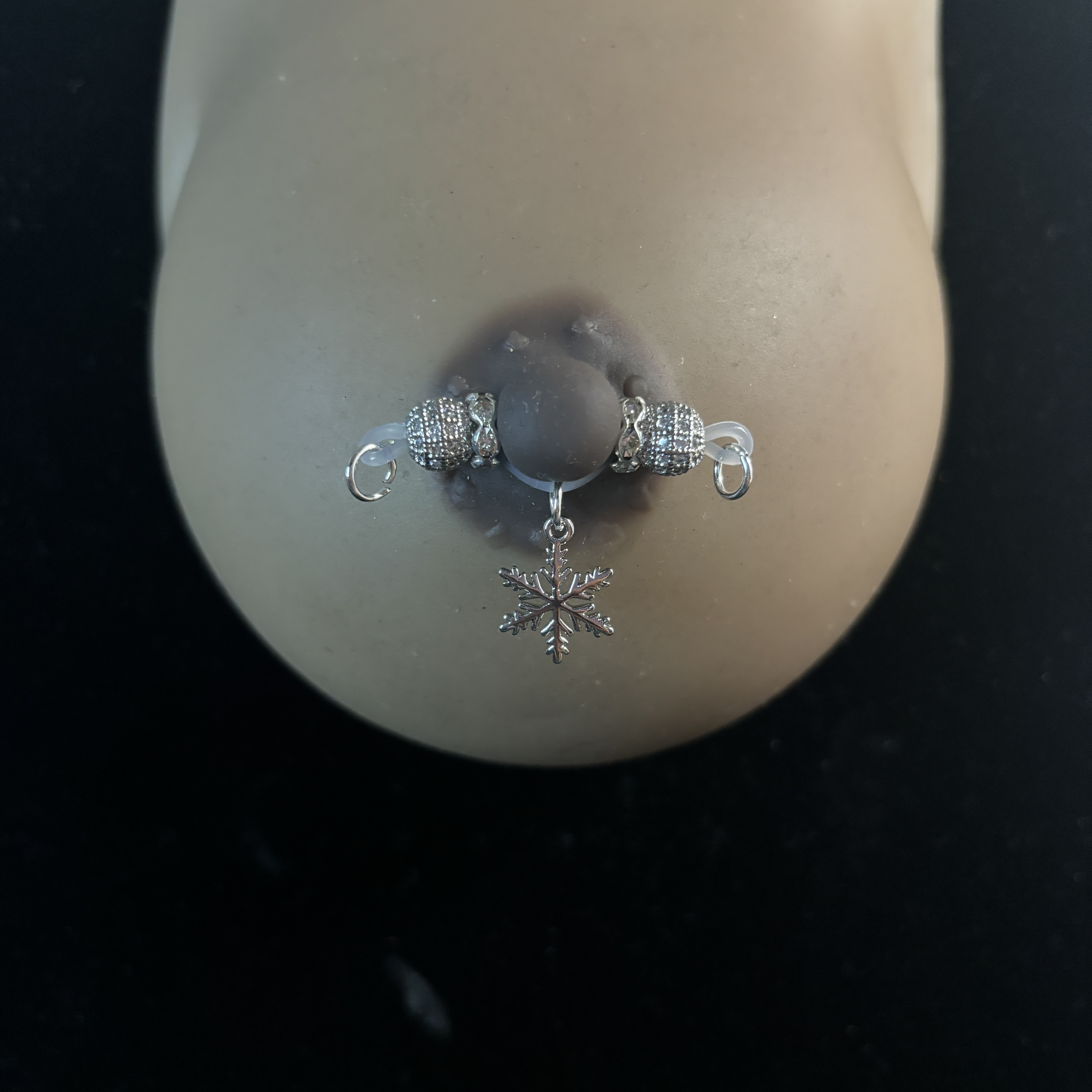 The silver textured bead paired with the snowflake pendant creates a pure and elegant aesthetic, evoking a cool winter charm. The barbell-style adjustable nipple clamp ensures a secure, lightweight, and comfortable fit, combining functionality with delicate beauty. Its refined silver finish gleams softly, while the intricate snowflake design adds a touch of elegance and romance. Minimalist lines and exquisite craftsmanship blend seamlessly, presenting a sophisticated and understated luxury.
