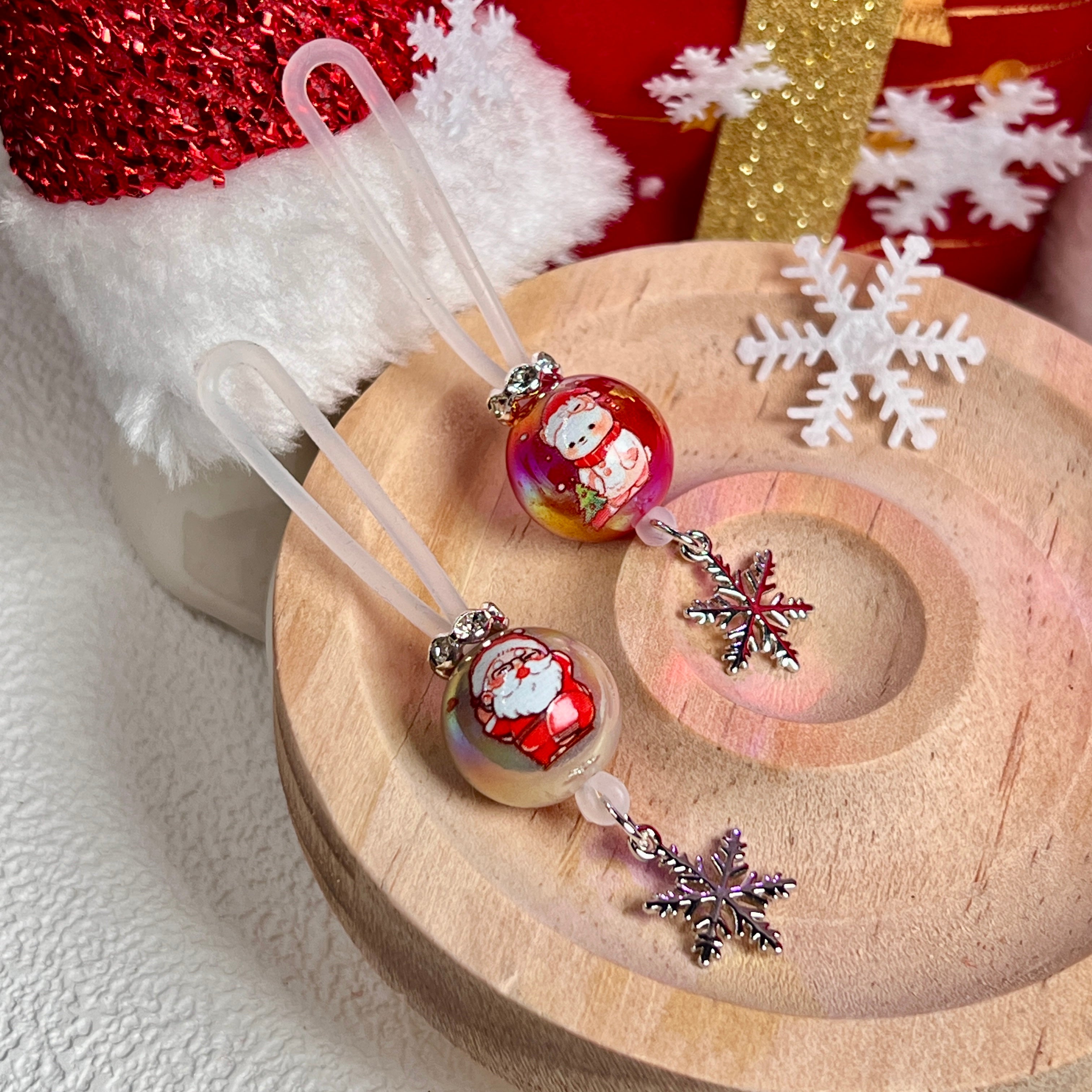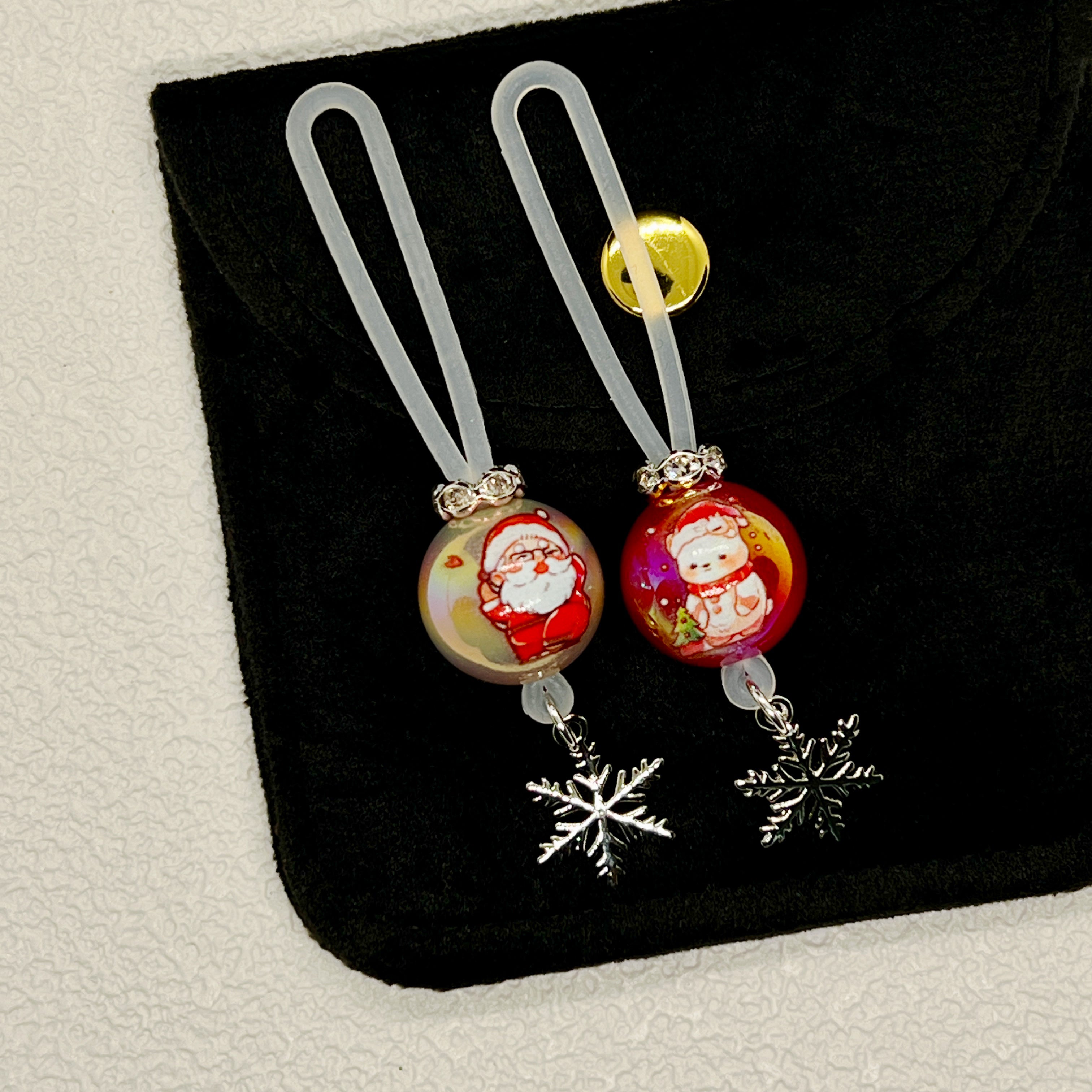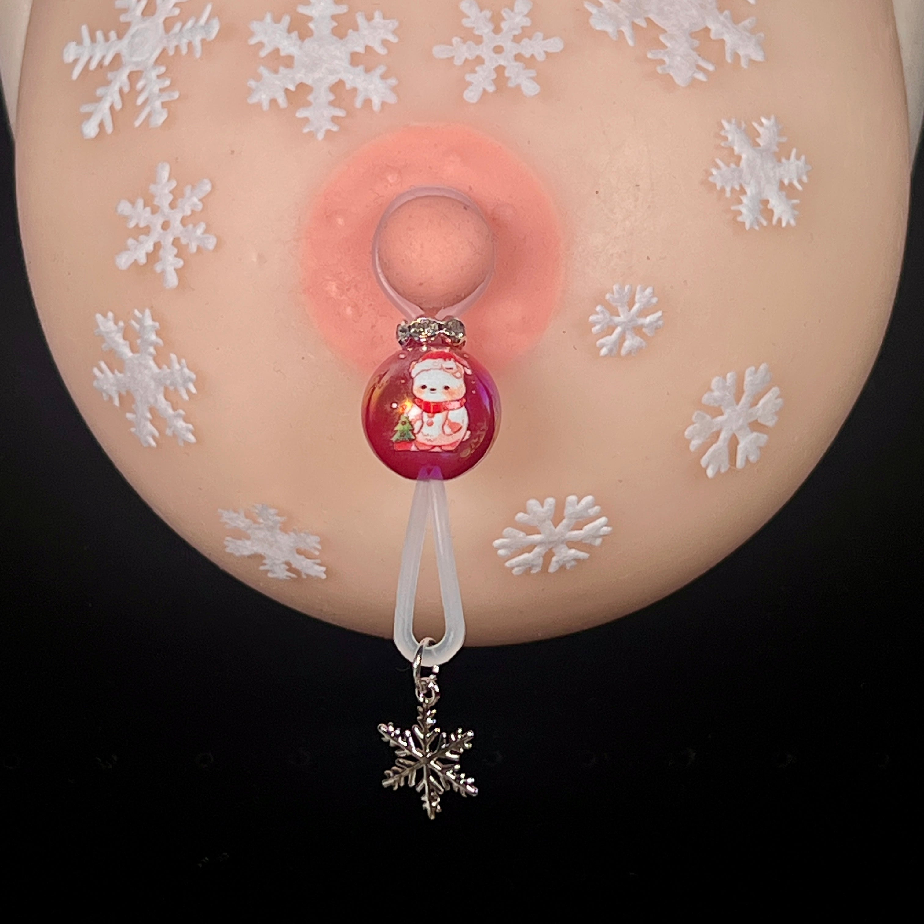 Translucent round beads adorned with Santa Claus motifs and silver snowflake pendants. The adjustable nipple clips exude festive elegance and refined allure, adding a luxurious sparkle to intimate moments.
